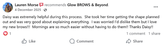 Wow wow wow! I can’t say enough good things about this whole experience. Daisy was well informed, answered all my questions, took her time with the entire process and made me feel confident in the shape and application before starting. 10/10